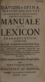Manuale sive lexicon pharmaceutico-chymicum / ... partim ex corpore pharmaceutico Domini Physici Jüngken huc translata.