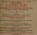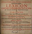 Lexicon chymico-pharmaceuticum, in duas partes distinctum, ubi pars prior continet selectos processus chymicos ... pars altera exhibet composita pharmaceutico galenica, tam hactenus usualia, quàm alia his subordinata, & correctiora dicta / [Johann Helfrich Jüngken].