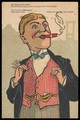 A dandy wearing a ring on each hand while smoking a cigar. Colour process print, ca. 1905.