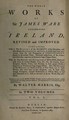 The whole works of Sir James Ware concerning Ireland : revised and improved. ... Written in Latin ... newly translated into English ... and continued ... / by Walter Harris, Esq ; in two volumes.