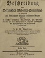 Beschreibung einer Berlinischen Medaillen-Sammlung, die vorzüglich aus Gedächtnis-Münzen berühmter Aertze bestehet; [nebst einer Geschichte der Wissenschaften in der Mark Brandenberg, besonders der Arzneiwiddenschaft ... bis zu Ende des sechszehnten Jahrhunderts] / [Johann Carl Wilhelm Moehsen].