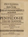 Programma quo ... in ipsa Pentecoste de vera dei agnitione ut gratulentur sibi omnes, qui ad eandem pervenerunt, vitamque etiam agant illa dignam ... monet & sollicitat / [Johann Ernst Schaper].