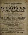 Dissertatio inauguralis medica, sistens casum asthmatis sanguineo-spasmodici ... / auctor respondens Johannes Fridericus Cartheuser.