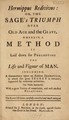 Hermippus redivivus, or, the sage's triumph over old age and the grave. Wherein, a method is laid down for prolonging the life and vigour of man. Including, a commentary upon an antient inscription, in which this great secret is revealed; supported by numerous authorities. The whole interspersed with a great variety of remarkable, and well-attested relations / [Anon].