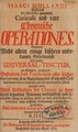 Isaaci Hollandi ... Curieuse und rare chymische Operationes, worinnen nicht allein einige bisshero unbekannte Geheimnisse die rechte Universal-Tinctur zu erlangen, angezeigt ... aus einem alten autographo M[anu]sc[rip] to des Autoris / heraus gegeben von R.H.C.