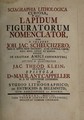 Sciagraphia lithologica curiosa, seu: lapidum figuratorum nomenclator / olim a celebri Joh. Jac. Scheuchzero ... conscriptus; postmodo auctus et illustratus a Jac. Theod. Klein, præmissa epistola Dn. Maur. Ant. Cappeller de Studio lithographica; de Entrochis et Belemnitis.