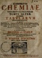 Conspectvs chemiae theoretico-practicae in forma tabvalrvm repraesentatvs, in qvibvs physica, praesertim svbterranea, et corporvm natvralivm principia habitvs inter se, proprietates, vires et vsvs itemqve praecipva chemiae pharmacevticae et mechanicae fvndamenta e dogmatibvs Becheri [Beccheri] et Stahlii. Potissimvm explicantvr, eorvndemqve et aliorvm celebrivm chemicorvm experimentis stabilivntvr / avctore D. Ioanne Ivnckero.