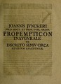 Propempticon inaugurale de discreto sensu circa studium anatomiae / [Johann Juncker].
