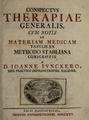 Conspectus therapiae generalis, cum notis in materiam medicam tabulis XX methodo Stahliana conscriptus / A D. Ioanne Iunckero.