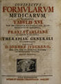 Conspectus formularum medicarum, exhibens tabulis XVI tam methodum rationalem, quam remediorum specimina, ex praxi Stahliana potissimum desumta. Et therapiae generali accomodata / Auctore D. Joanne Junckero.