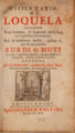 Dissertatio de loquela, qua non solum vox humana, & loquendi artificium ex originibus suis eruuntur: sed & traduntur media, quibus ii, qui ab incunabulis surdi & mudi fucrunt, loquelam adipisci, quique difficulter loquuntur, vitia sua emendare possint / Auctore Io. Conrado Amman.