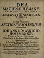 Idea machinae humanae anatomico-physiologica ad observationes recentiores conformata et ad methodum sectionum solennium accommodata ... Annexa est ... decas programmatum anatomicorum / [Johann Moritz Hoffman].