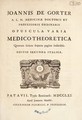 Opuscula varia medico-theoretica. Quorum seriem sequens pagina indicabit / [Johannes de Gorter].