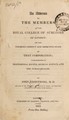 An address to the members of the Royal College of Surgeons of London, on the injurious conduct and defective state of that corporation : with reference to professional rights, medical science, and the public health / by John Armstrong.