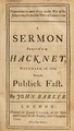 Preparation to meet God in the way of His judgments, the present duty of Christians : a sermon preach'd at Hackney, December, 16, 1720, being the publick fast / By John Barker.