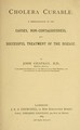 Cholera curable : a demonstration of the causes, non-contagiousness, and successful treatment of the disease / by John Chapman.