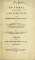 An appeal addressed to the calm reflection of the author of the Critical Review : on 1. abusive language : 2. ambiguity and embarrassment : 3. espionnage and detraction : 4. the Jennerian discovery : with letters to the authors of the Monthly review and British critic / by John Coakley Lettsom.