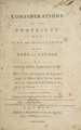 Considerations on the propriety of a plan for inoculating the poor of London at their own habitations: with a view particularly to the arguments urged in defence of it / by the author of a late anonymous Letter to Dr. J.C. Lettsom.