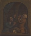 A tooth-drawer frightening his patient with a hot coal causing him to pull away violently and extract a tooth. Pen drawing after J. Collier, 1773.