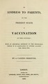An address to parents on the present state of vaccination in this country : with an impartial estimate of the protection which it is calculated to afford against the small-pox / by a candid observer [i.e. John Conolly].