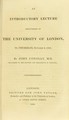 An introductory lecture delivered in the University of London, on Thursday, October 2, 1828 / by John Conolly.