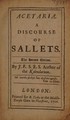 Acetaria. A discourse of sallets / By J. E[velyn]. S.R.S.