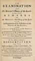 An examination of Dr. Burnet's Theory of the earth: with some remarks on Mr. Whiston's New theory of the earth. Also an examination of the Reflections on the theory of the earth [by T. Burnet]; and a defence of the Remarks on Mr. Whiston's New theory / [by J. Keill].
