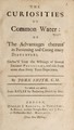 The curiosities of common water: or the advantages thereof in preventing and curing many distempers. Gather'd from the writings of several eminent physicians, and also from more than forty years' experience. To which are added, some rules for preserving health by diet / by John Smith.