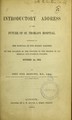 An introductory address on the future of St. Thomas's Hospital : delivered at the Hospital in the Surrey Gardens, on the occasion of the opening of the session of its Medical and Surgical College, October 1st, 1862 / by John Syer Bristowe.