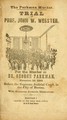 Trial of Professor John W. Webster : for the murder of Dr. George Parkman in the Medical college, November 23, 1849. Supreme Judicial Court for Suffolk, March term. Present Chief Justice Shaw, Associate Judges Wilde, Metcalf and Dewey. Counsel for the Commonwealth - Hon. John H. Clifford, George Bemis. Counsel for the Defence - Hon. Pliny Merrick, E. D. Sohier / Stenographic report, carefully revised and corrected.