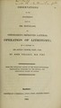 Observations on the statement made by Dr. Douglass, of Cheselden's improved lateral operation of lithotomy; in a letter to Sir Astley Cooper ... / by John Yelloly.