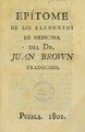 Epitome de los elementos de medicina del Dr. J. Brown / traducido [por J.R.; prologuillo por Br. Joseph Mariano Mociño].