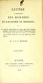 Lettre à messieurs les membres de l'Académie de médecine, sur la marche qu'il convient de suivre pour fixer l'opinion publique relativement à la réalité du magnétisme animal, aux avantages qu'on peut en retirer, et aux dangers qu'il présente lorsqu'on en fait une application inconsidérée / par J.P.F. Deleuze.