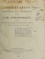 Dissertation physique et chimique : sur l'air atmophérique, suivie de l'examen des principaux météores aqueux / [Jean Sébastien Eugène Julia de Fontenelle].