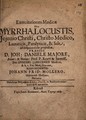Exercitationes medicae de myrrha, locustis, jejunio Christi, Christo medico, lunaticis, paralyticis, et sale / [Johann Friedrich Moller].