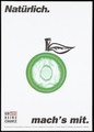 An apple with a green condom instead of a fruit; representing protection against AIDS. Colour lithograph after M. Kolvenbach and G. Meyer, 199-.