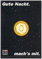 A full moon in a black night sky with a yellow condom for the moon; representing protection against AIDS. Colour lithograph after M. Kolvenbach and G. Meyer, 199-.