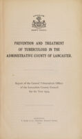 Prevention and treatment of tuberculosis in the administrative county of Lancaster report of the Central Tuberculosis Officer of the Lancashire County Council : 1924 / Lancashire County Council.
