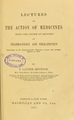 Lectures on the actions of medicines : course of lectures on pharmacology and therapeutics delivered at St. Bartholomew's Hospital during the Summer session of 1896.