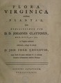 Flora Virginica exhibens plantas / quas ... D.D. Johannes Claytonus in Virginia crescentes observavit, collegit et obtulit D. Joh. Fred. Gronovio, cujus studio & opera descriptae & in ordinem sexualem systematicum redactae sistuntur. [Edited by L.T. Gronovius].