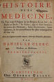 Histoire de la medecine ou l'on void l'origine & les progrès de cet art. De siecle en siecle, les sectes, qui s'y sont formées, les noms des médecins, leursdécouvertes, leurs opinions, & les circonstances le plus remarquables de leur vie. Avec des figures en tailles douces tirées des médailles anciennes / par D[aniel] L[e] C[lerc] D.M.