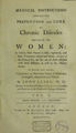 Medical instructions towards the prevention and cure of chronic diseases peculiar to women: for the use of those affected by such diseases, as well as the medical reader : to which are added, prescriptions, or efficacious forms of medicine in English, adapted to each disease / by John Leake.