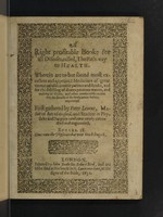 A right profitable booke for all diseases, called, The path-way to health : Wherein are to bee found most excellent and approued medicines of great vertue: as also notable potions and drinks, and for the distilling of diuers precious waters, and making of oyles, and other comfortable receits for the health of the body, neuer before imprinted First gathered by Peter Leuens, Master of Art of Oxford, and student in physicke and surgery: and now newly corrected and augmented.