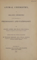 Animal chemistry, or organic chemistry in its applications to physiology and pathology / By Justus Liebig. Edited from the author's manuscript by William Gregory.