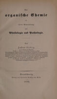Die organische Chemie in ihrer Anwendung auf Physiologie und Pathologie / Von Justus Liebig.