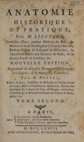 Historia anatomico-medica, sistens numerosissima cadaverum humanorum extispicia, quibus in apricum venit genuina morborum sedes; horumque referantur causae, vel patent effectus. Opus quadripartitum, cujus liber primus recenset laesiones internas abdominis. Secundus exhibet variam stragem pectoris. Tertius prodit diversam labem cerebri. Quartus vero vitia externa colligit ... / Recensuit et suas observationes numero plures adjecit, uberrimumque indicem nosologico ordine concinnavit Antonius Portal.