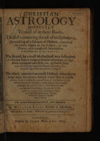 Christian astrology modestly treated of in three books. The first containing the use of an ephemeris, the erecting of a scheam of heaven; nature of the twelve signes of the Zodiack, of the planets; with a most easie introduction to the whole art of astrology. The second, by a most methodicall way instructeth the student how to judge or resolve all manner of questions contingent unto man ... The third, containes an exact method, whereby to judge upon nativities ... / [William Lilly].