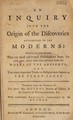 An inquiry into the origin of the discoveries attributed to the moderns: wherein it is demonstrated that our most celebrated philosophers have, for most part, taken what they advance from the works of the ancients; and that many important truths in religion were known to the pagan sages / Translated from the French of the Revd. Mr. Dutens. With considerable additions communicated by the author.