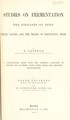 Studies on fermentation : the diseases of beer, their causes, and the means of preventing them / by L. Pasteur ; a translation, made with the author's sanction, of Etude sur la bière ... by Frank Faulkner and D. Constable Robb.