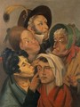 A woman examines another woman's sore eye, while a man and other women stand by. Oil painting after Louis-Léopold Boilly.